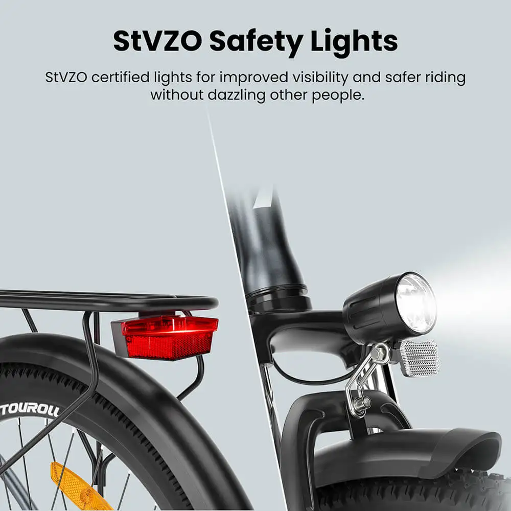 Cadrul ergonomic, lumina LED certificată StVZO, roțile de 26”, aripile și portbagajul integrat transformă Touroll B1 într-o bicicletă electrică versatilă, robustă și ideală pentru uz zilnic. Designul low-step facilitează urcarea și coborârea — perfectă pentru orice utilizator.