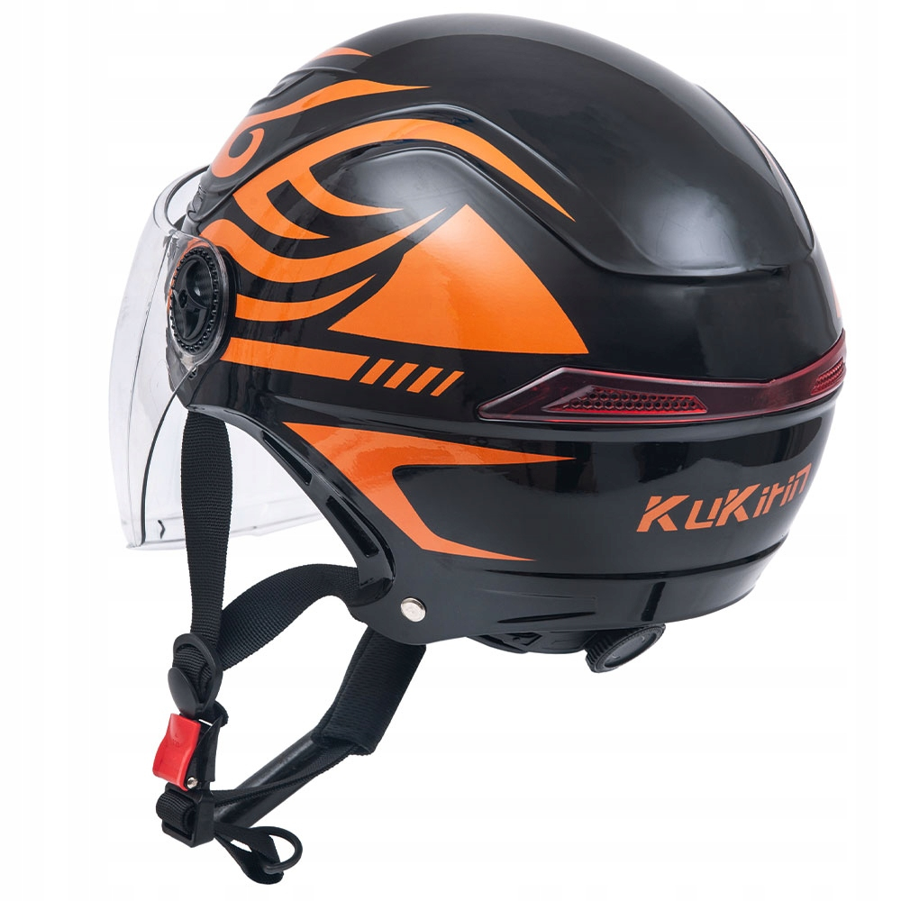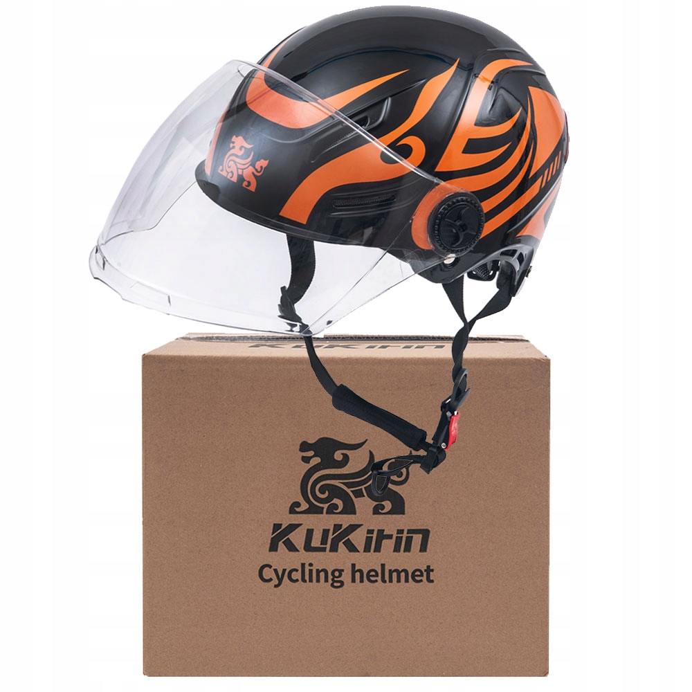 Cască trotinetă electrică KuKirin cu vizieră – mărime universală, protecție completă, negru-portocaliu