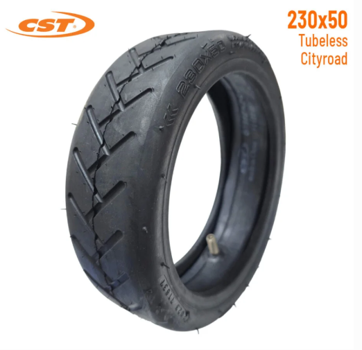 Anvelopă CST 230x50 cu cameră, ideală pentru utilizare urbană, oferind confort, aderență bună și stabilitate pe asfalt pentru trotinete electrice.