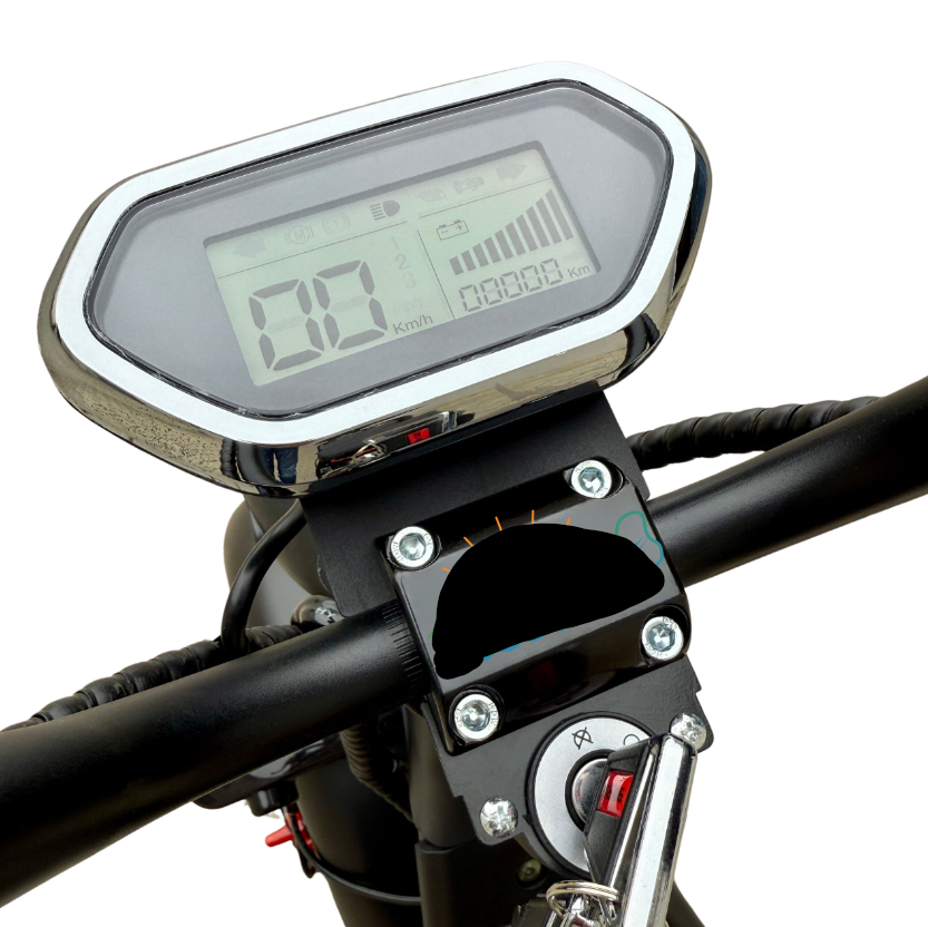 Descoperă Scuterul Electric Chopper 1500W, un model legal pe drumurile publice (limitare la 25 km/h, conform legislației), ideal pentru deplasările zilnice, confortabile și economice. Designul chopper îl face să se remarce, iar bateria Lithium 12Ah detașabilă oferă autonomie de 20–40 km, perfectă pentru oraș.