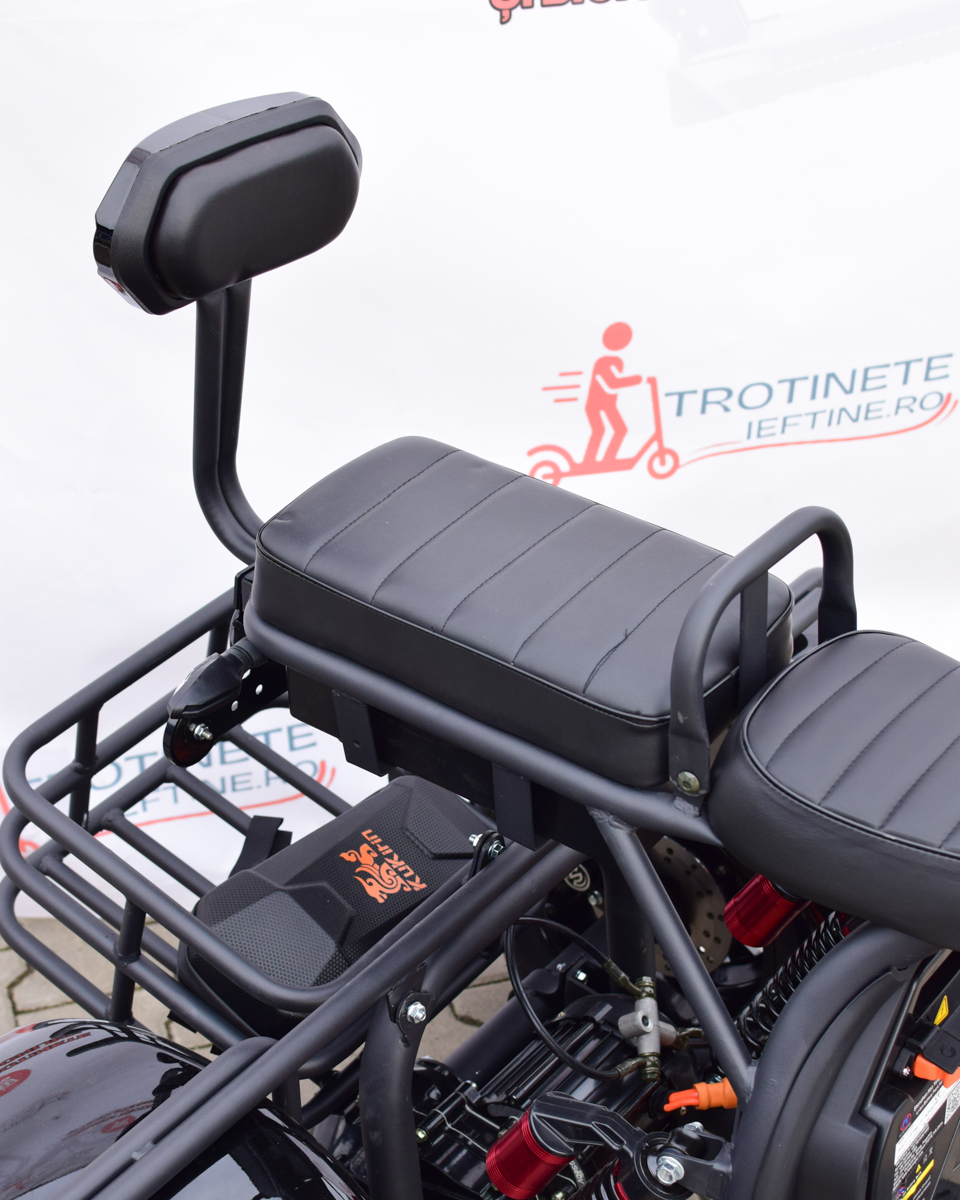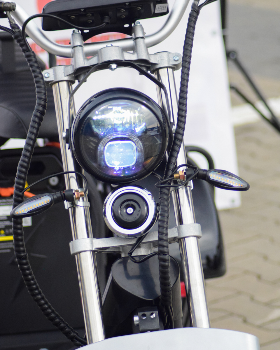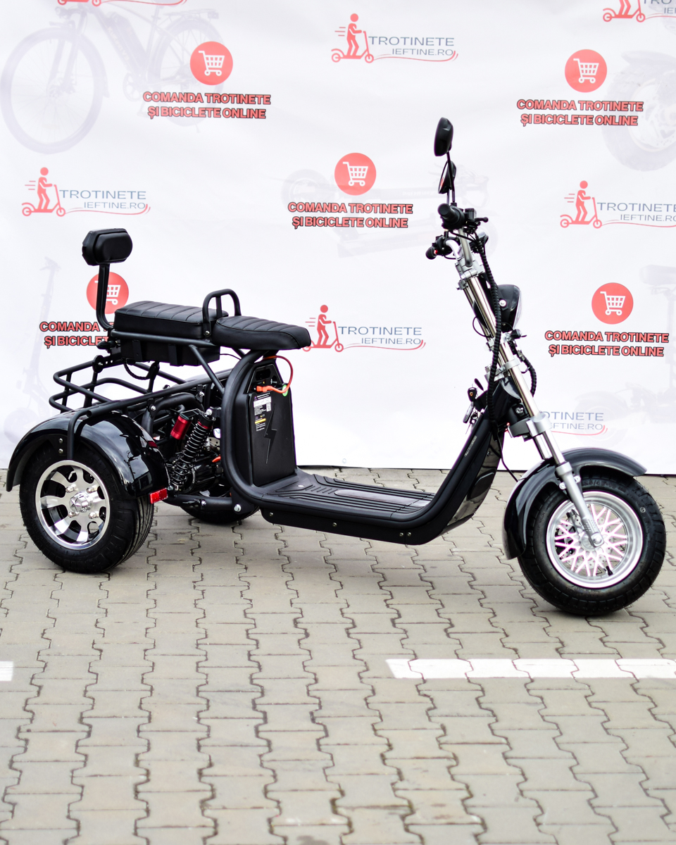 Dotat cu motor de 2000W, atinge viteza maximă de 45 km/h și oferă o autonomie impresionantă de până la 80 km datorită bateriei Li-ion 60V 20Ah detașabile. Designul în stil Harley, confortul pentru două persoane și cele 3 roți stabile îl fac alegerea ideală pentru deplasări urbane relaxate și pline de stil.