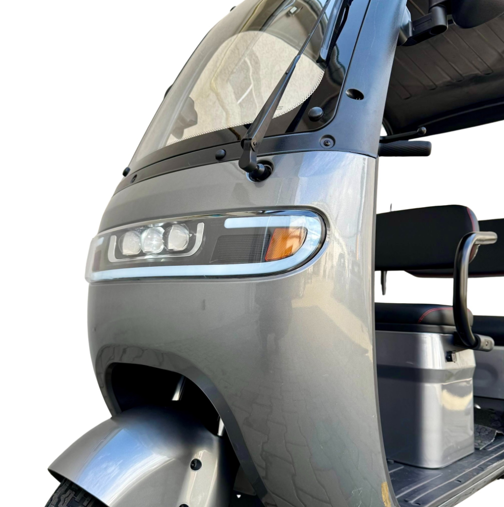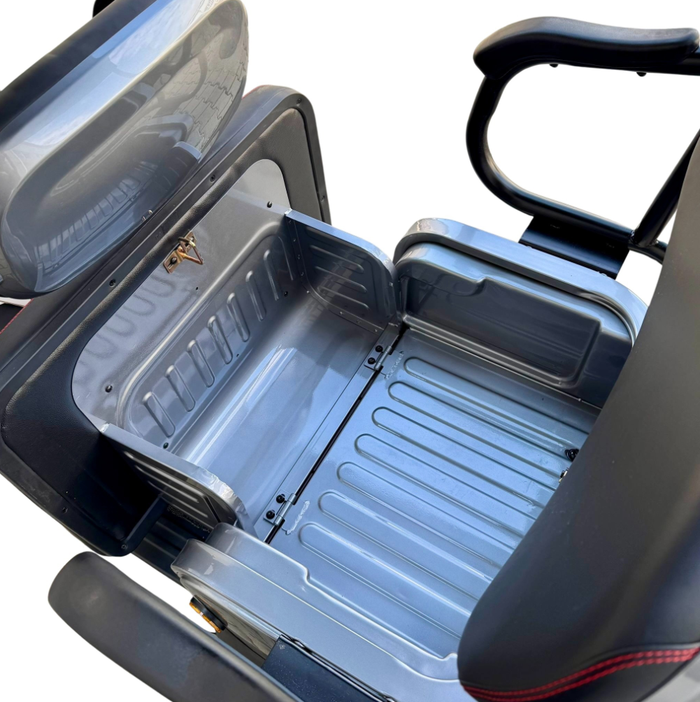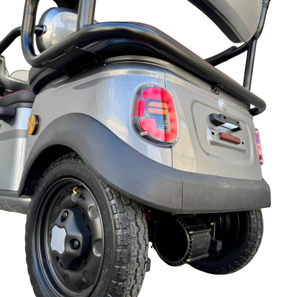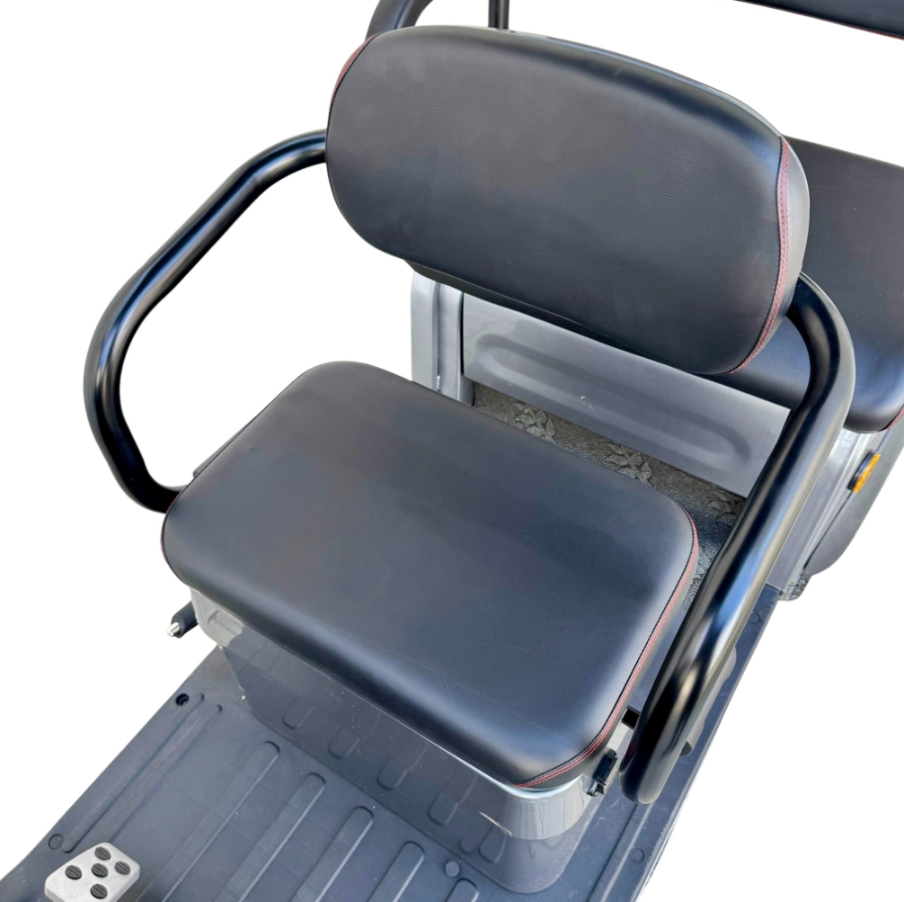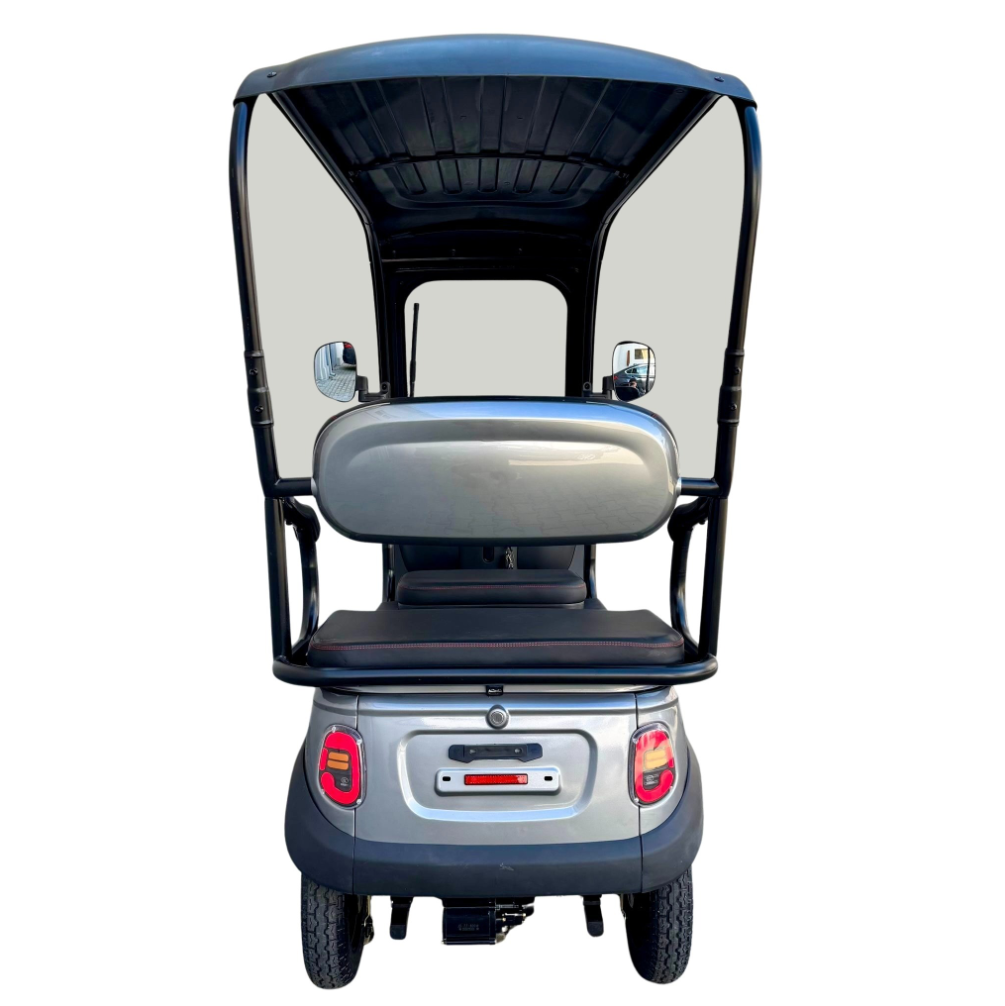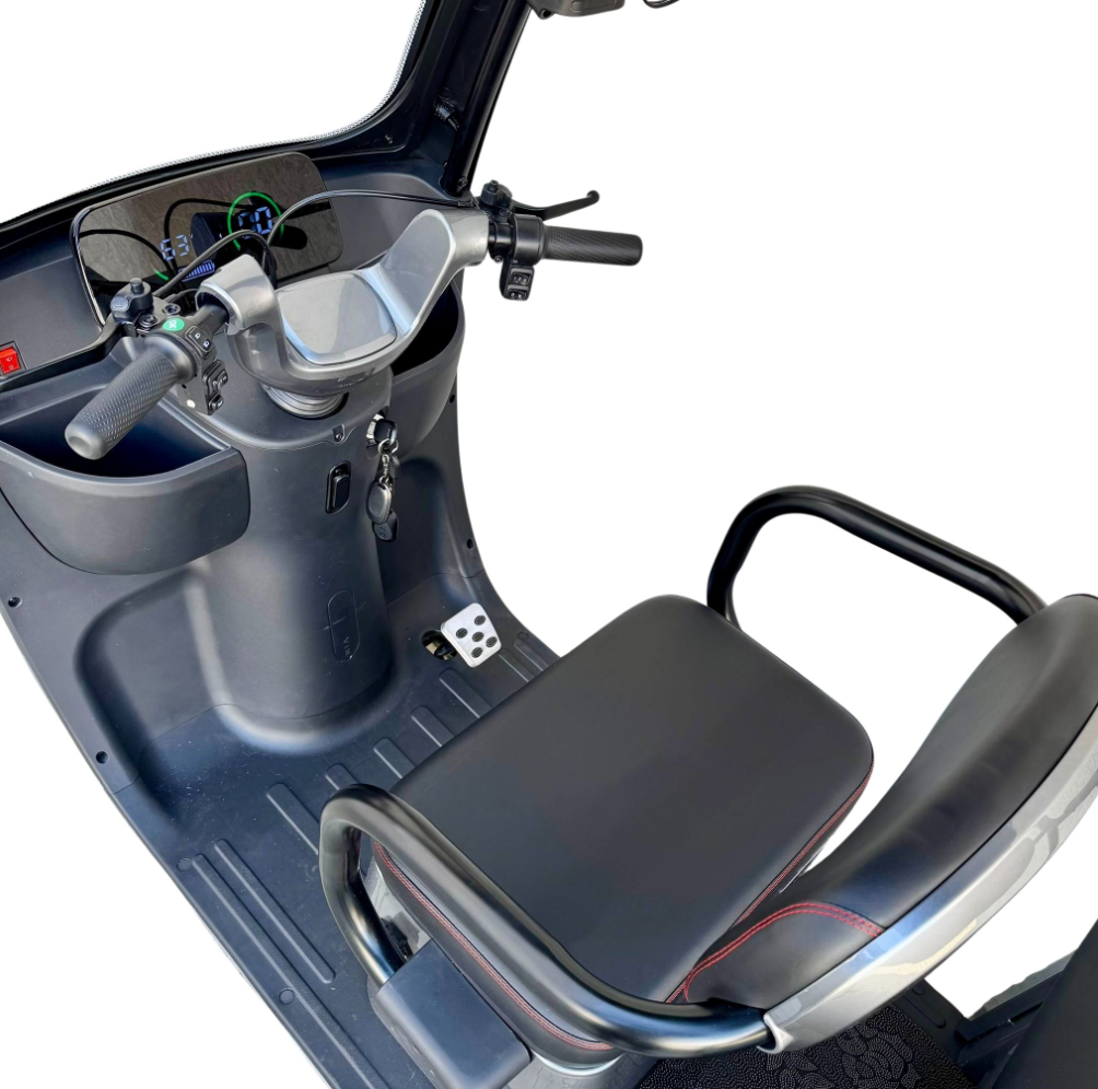 Tricicleta electrică cu 2 locuri este o soluție practică și confortabilă pentru transportul persoanelor și al diverselor bunuri, oferind stabilitate, economie și ușurință în utilizare. Cu viteză maximă de 25 km/h, nu necesită permis și poate fi folosită în siguranță în spații private sau în zone cu acces controlat. Modelul este echipat cu acoperiș și parbriz, oferind protecție împotriva vântului, ploii și soarelui, precum și multiple spații de depozitare pentru un plus de utilitate.