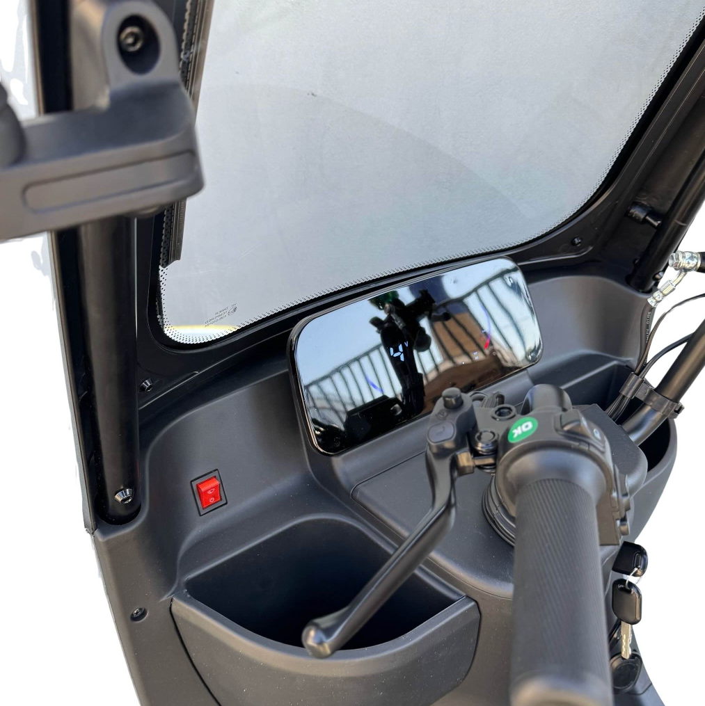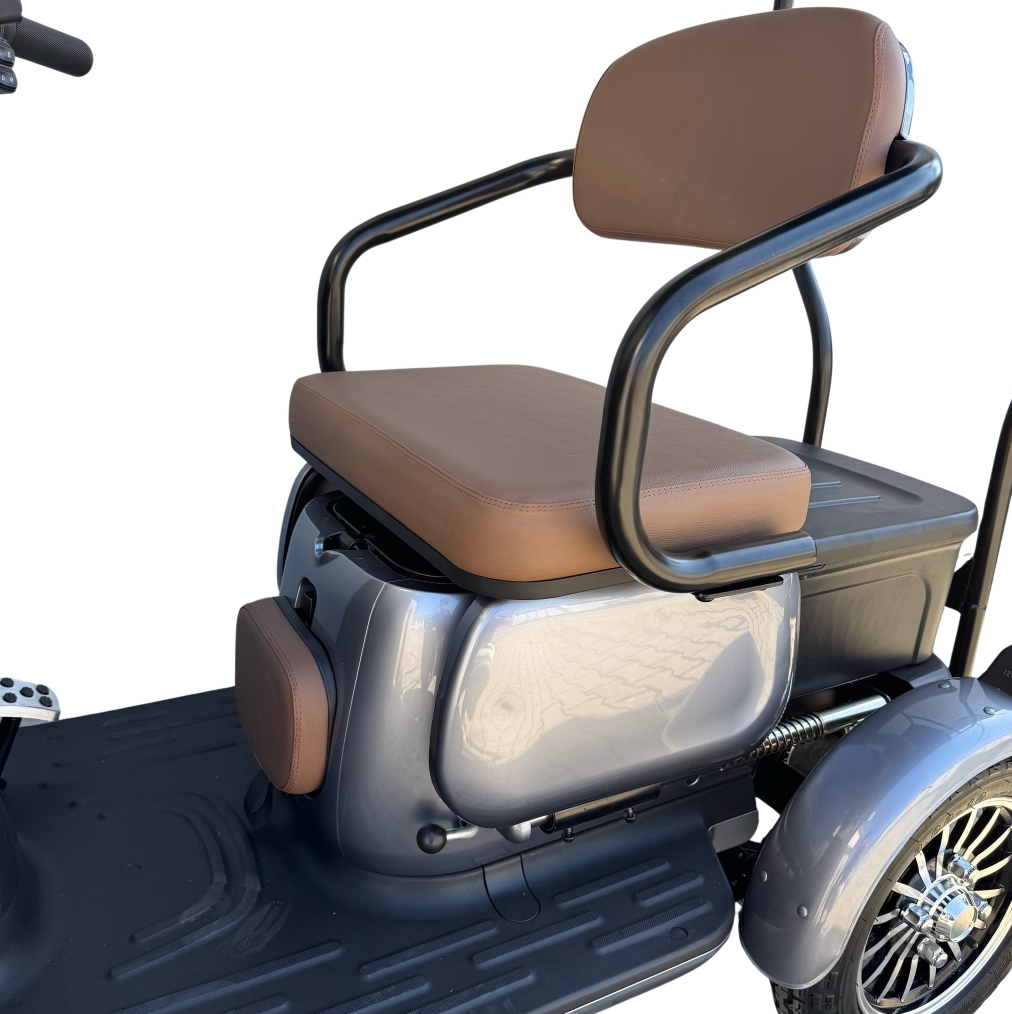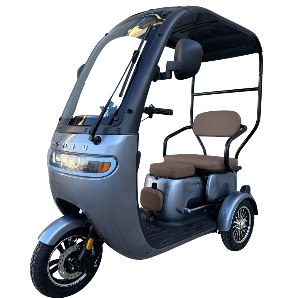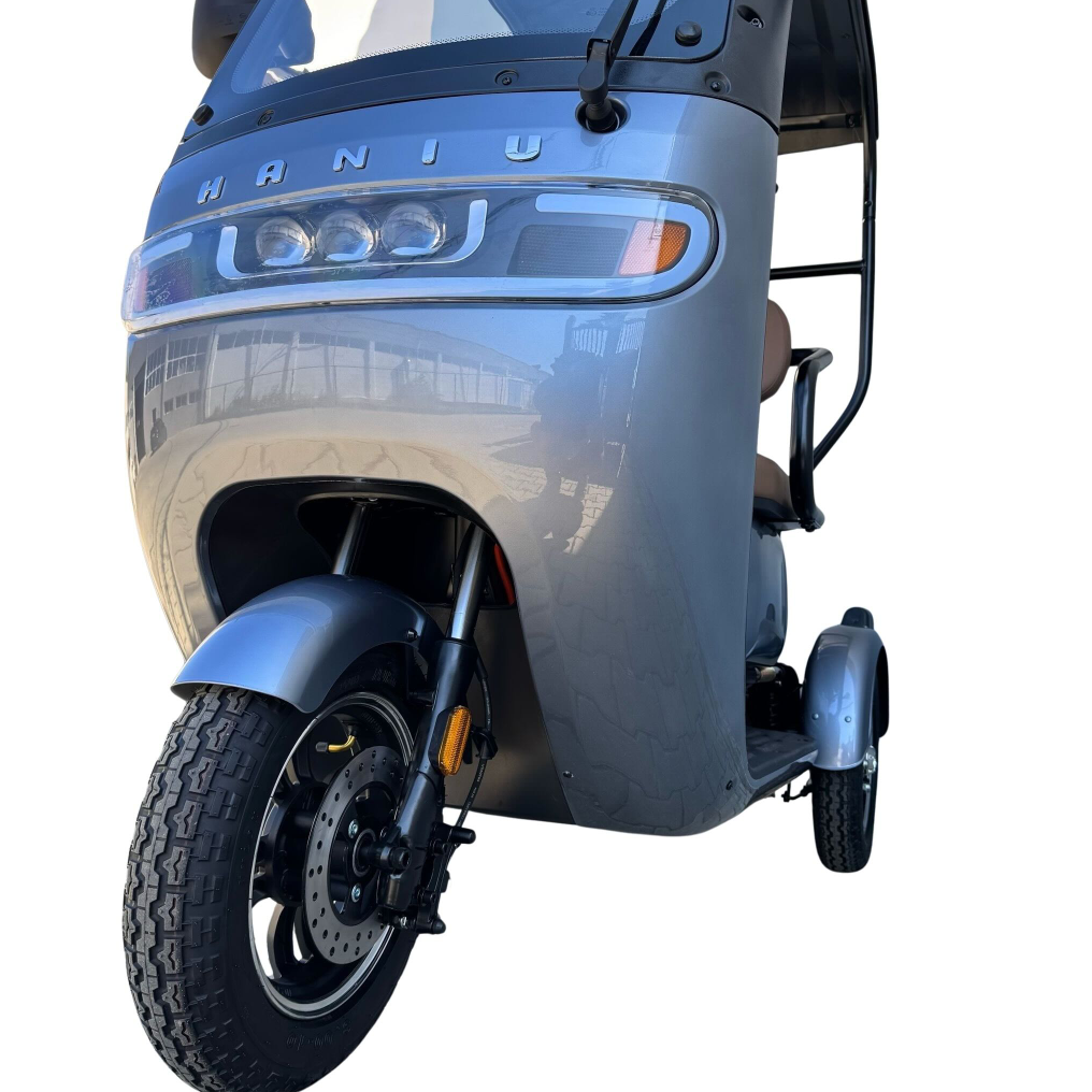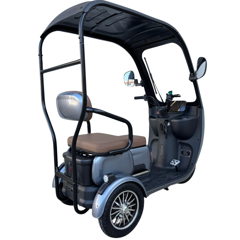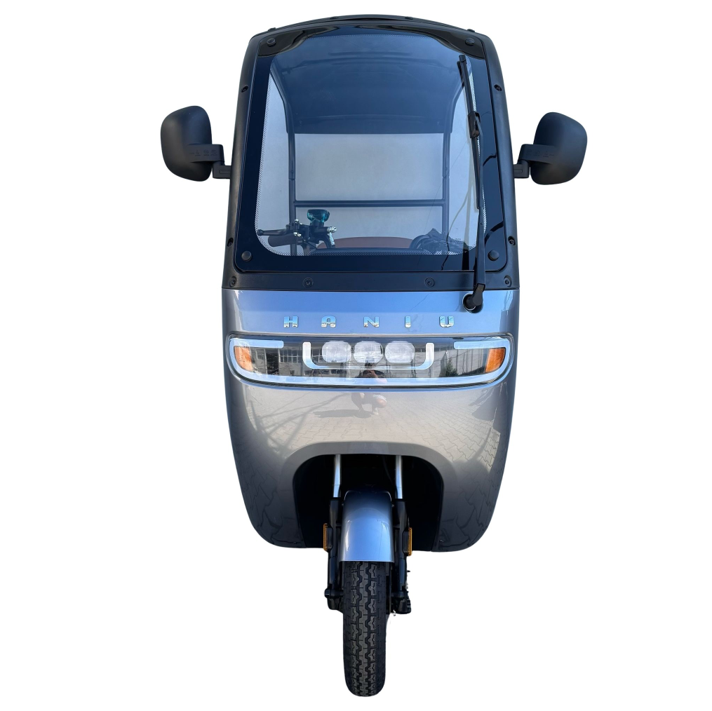 Tricicleta electrică cu 2 locuri reprezintă o soluție practică și confortabilă pentru transportul persoanelor și bunurilor în spații private. Viteza maximă de 25 km/h permite utilizarea fără permis, iar designul modern cu acoperiș și parbriz oferă protecție sporită împotriva ploii, vântului și soarelui. Modelul dispune de multiple spații de depozitare și funcții inteligente, fiind ideal pentru activități gospodărești, comerciale sau uz personal.