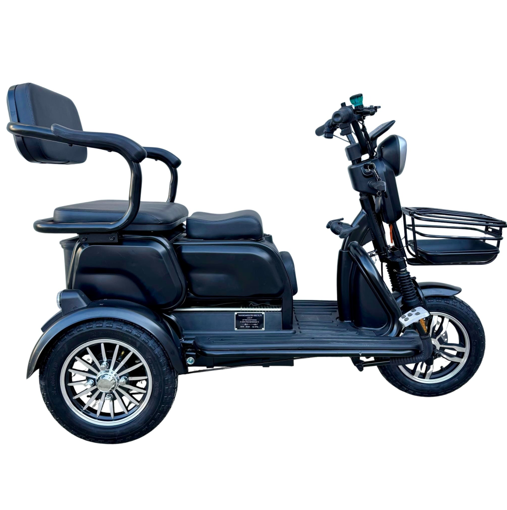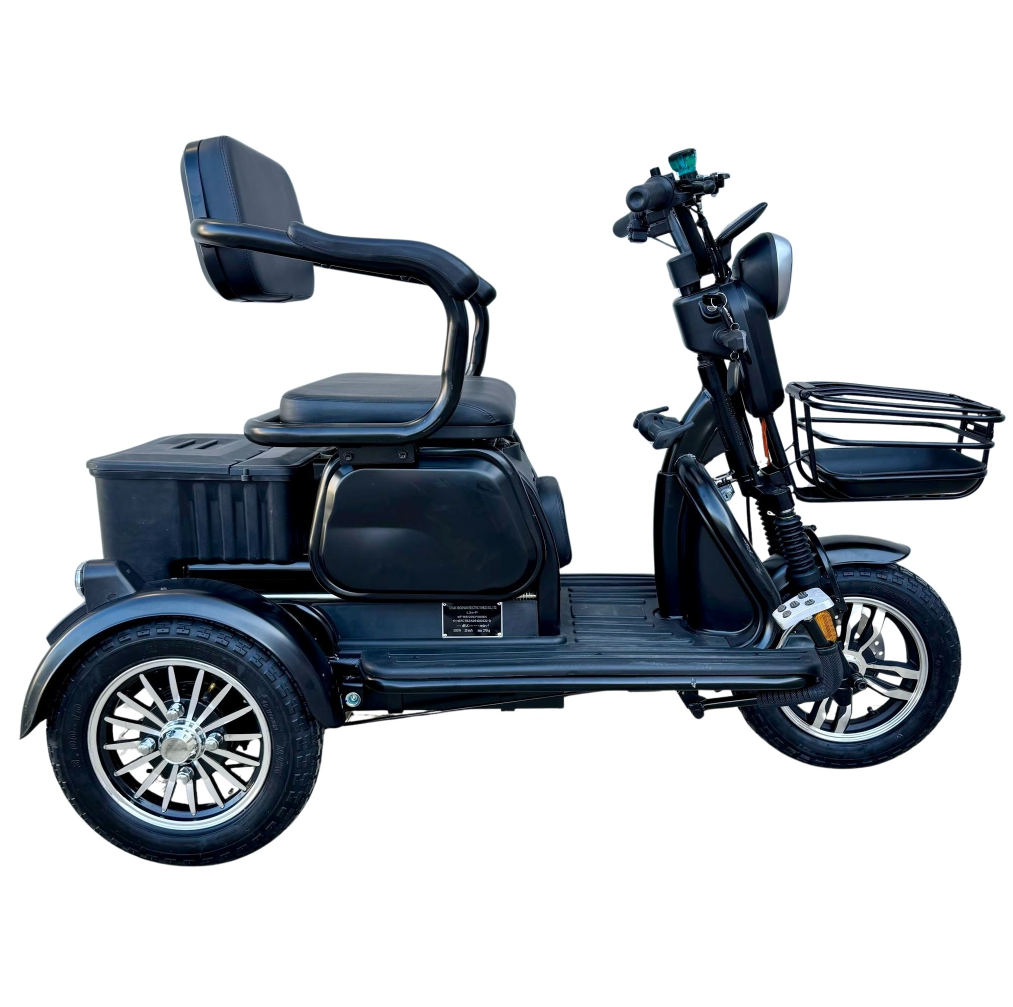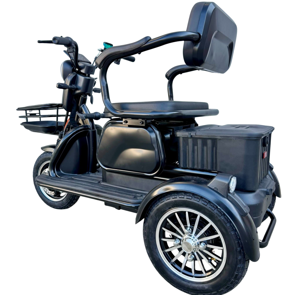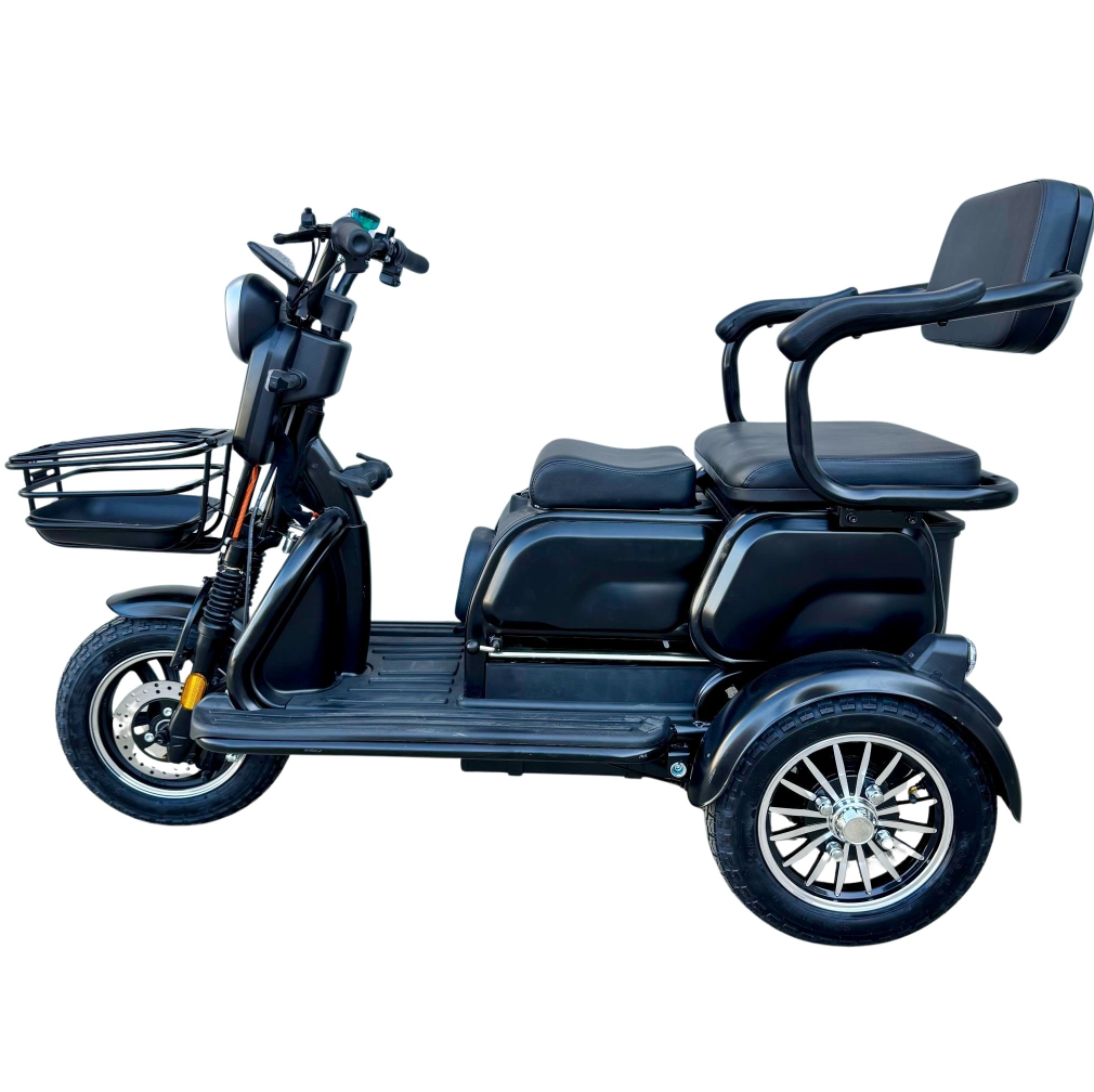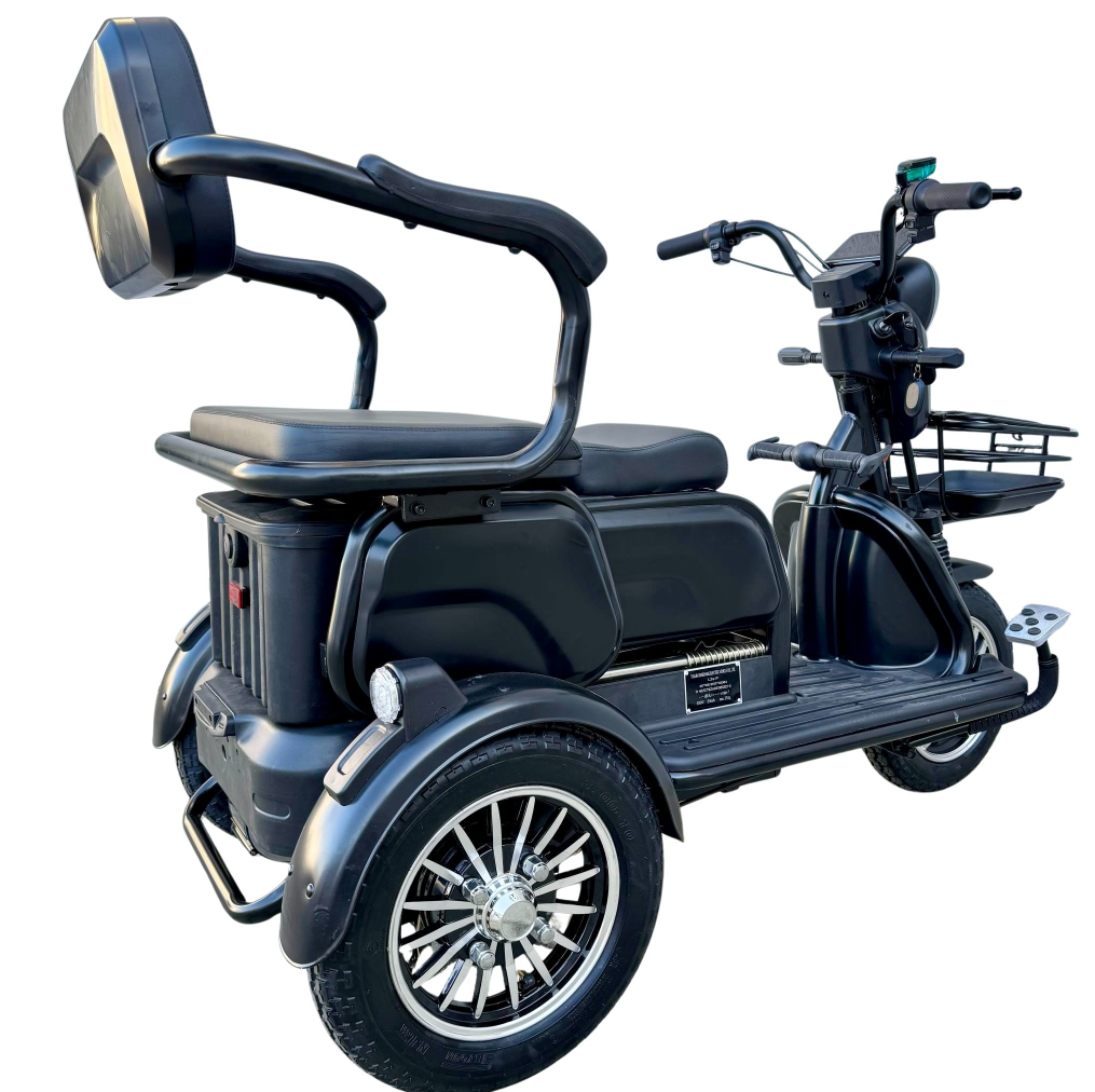 Tricicleta electrică cu 2 locuri este o soluție practică, stabilă și confortabilă pentru transportul persoanelor și al bunurilor în spații private. Cu viteză maximă limitată la 25 km/h, poate fi utilizată fără permis de conducere. Modelul include scaun pliabil pentru pasager, mai multe spații de depozitare și funcții moderne pentru o utilizare simplă și utilitară.
