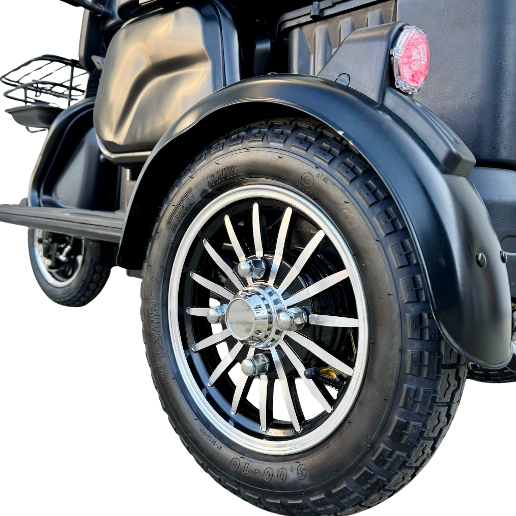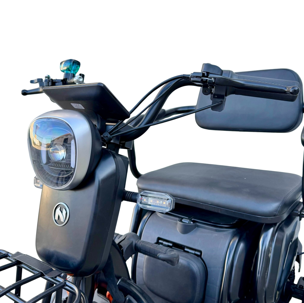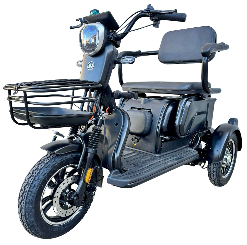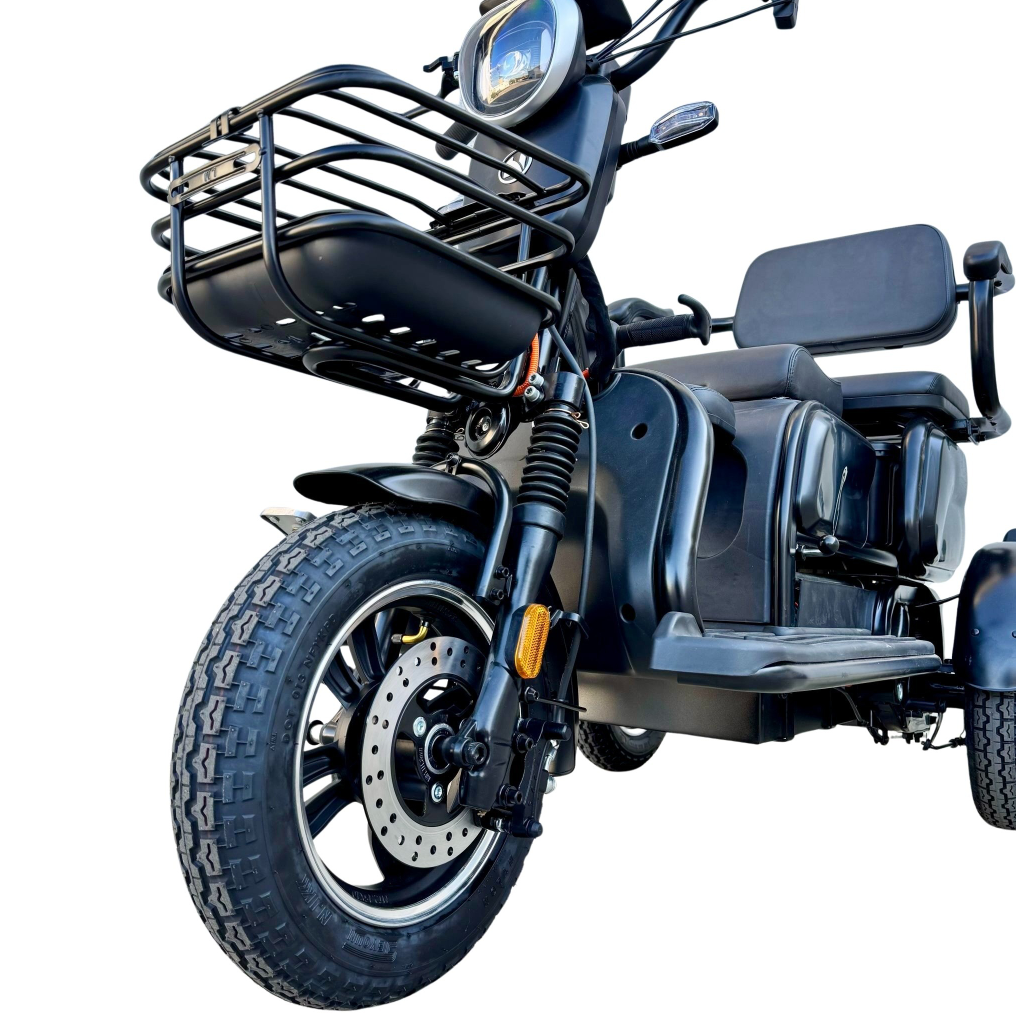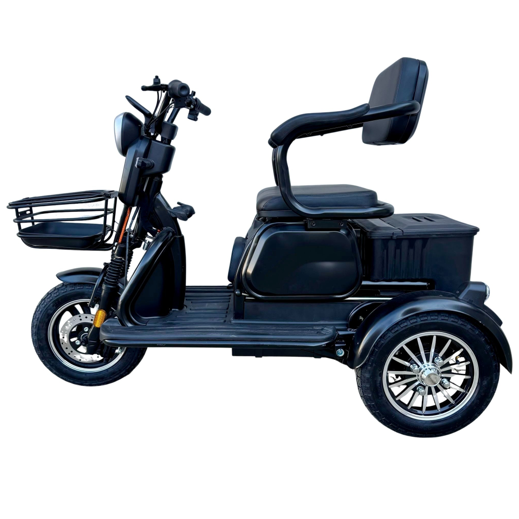 Tricicleta electrică cu 2 locuri este o soluție practică, stabilă și confortabilă pentru transportul persoanelor și al bunurilor în spații private. Cu viteză maximă limitată la 25 km/h, poate fi utilizată fără permis de conducere. Modelul include scaun pliabil pentru pasager, mai multe spații de depozitare și funcții moderne pentru o utilizare simplă și utilitară.