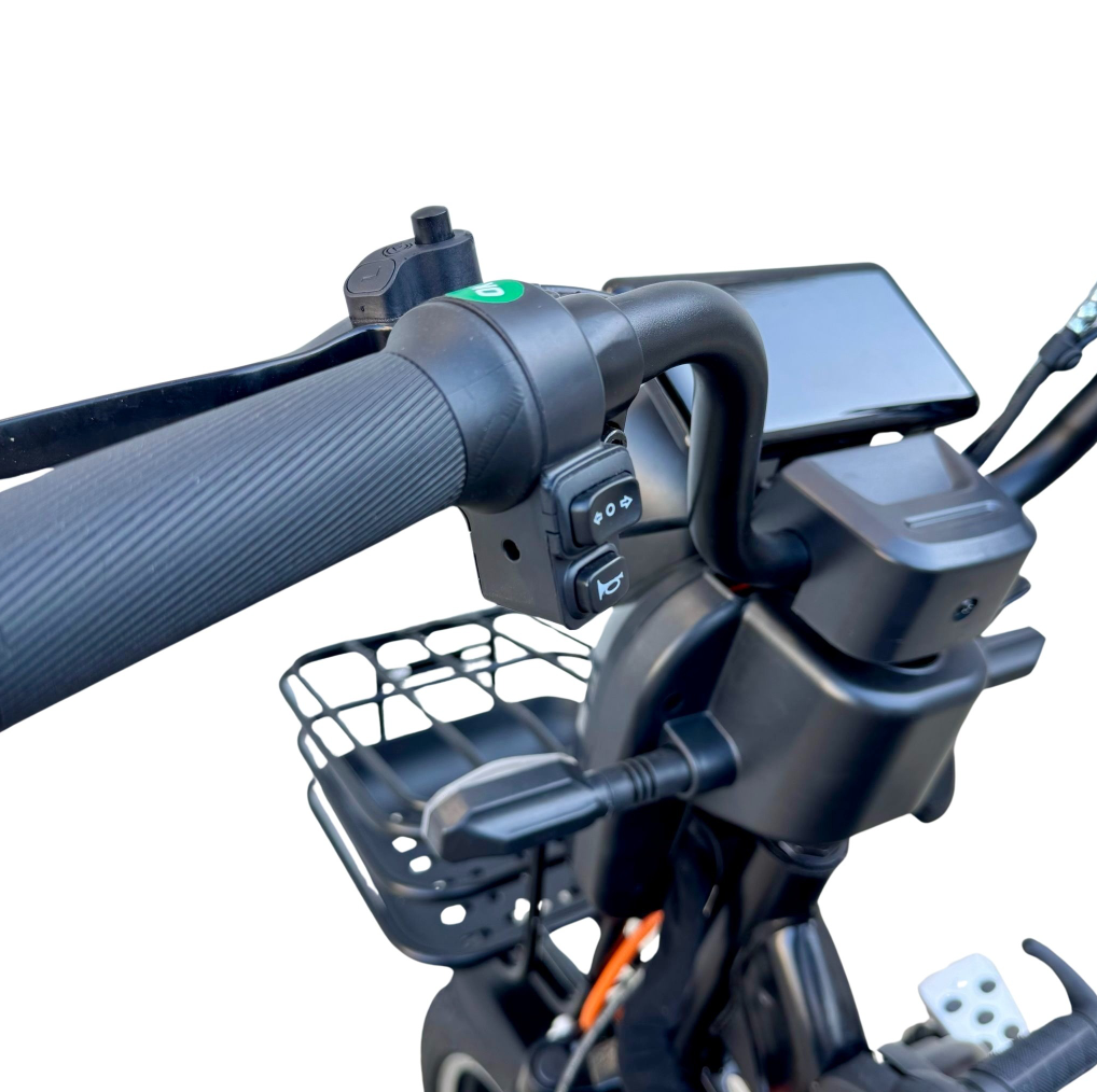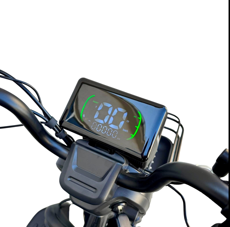 Display multifuncțional: viteză (km/h), kilometraj, nivel baterie