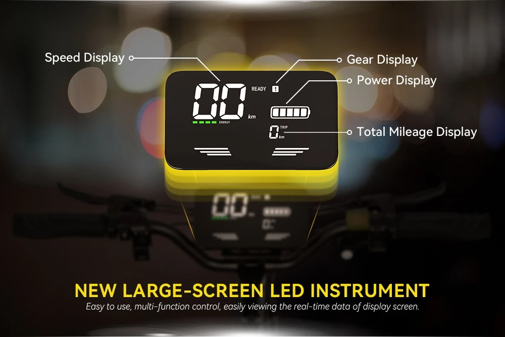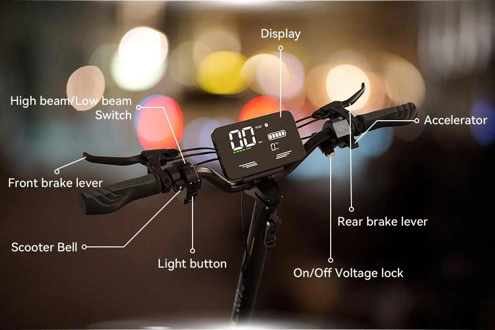 Sistemul de frânare pe disc față–spate garantează oprire sigură, iar display-ul LED mare afișează clar viteza, nivelul bateriei și modul de rulare. Plierea rapidă one-click face transportul și depozitarea simple, în ciuda construcției solide.