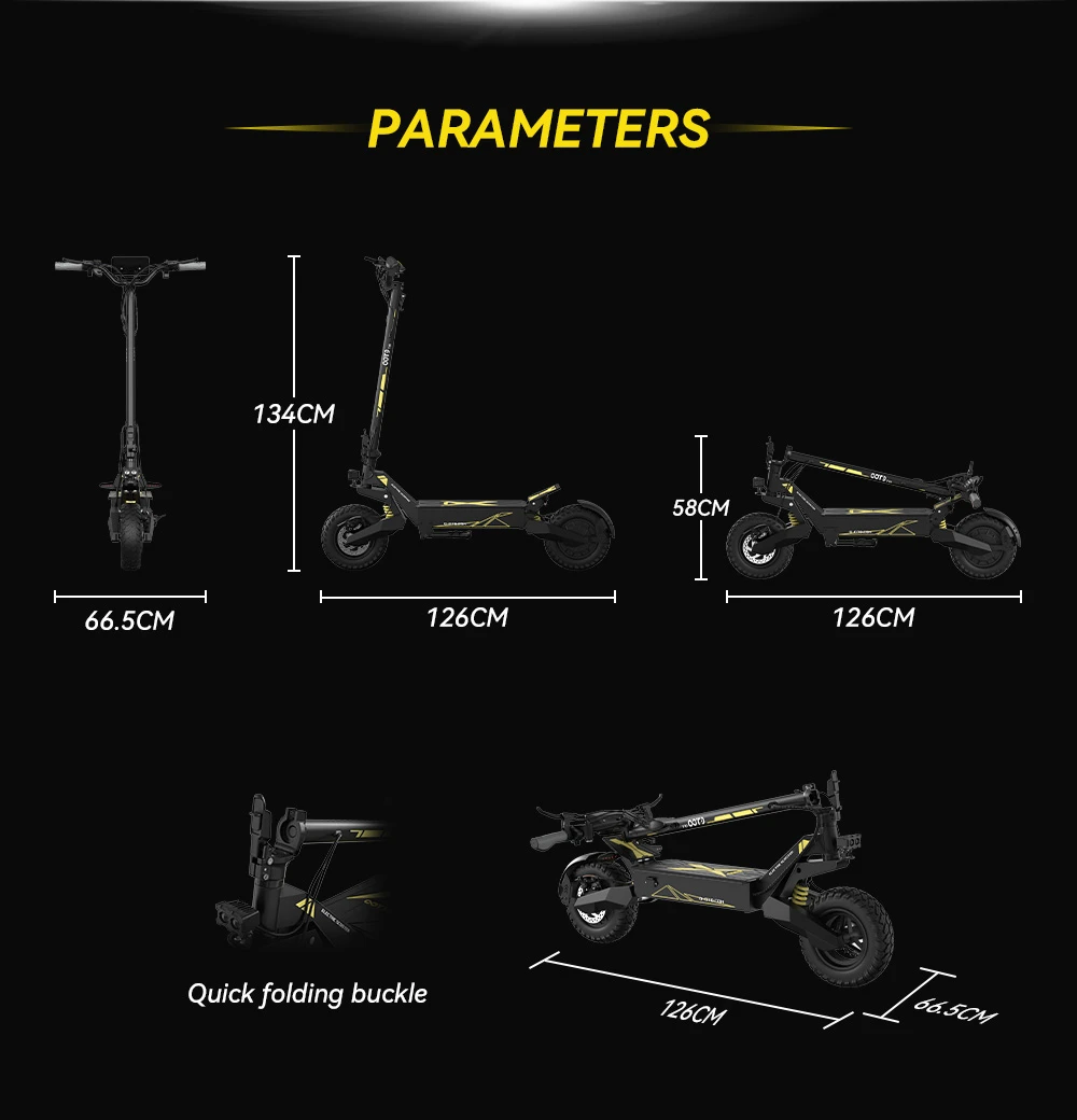OOTD T10 este o trotinetă electrică robustă și versatilă, concepută pentru utilizatori care vor putere, stabilitate și confort, atât în oraș, cât și pe drumuri mai dificile. Motorul de 500W cu vârf de 900W oferă accelerație puternică și capacitate excelentă de urcare, fiind potrivit inclusiv pentru utilizatori mai grei.
