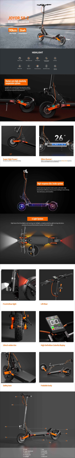 JOYOR S8-Z este echipată cu sistem de iluminare complet, pentru vizibilitate crescută pe timp de noapte, și un display digital color care afișează clar viteza, nivelul bateriei și informațiile de rulare. Mecanismul de pliere solid permite transportul și depozitarea facilă.