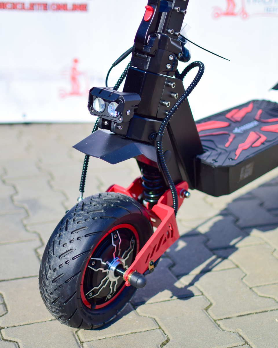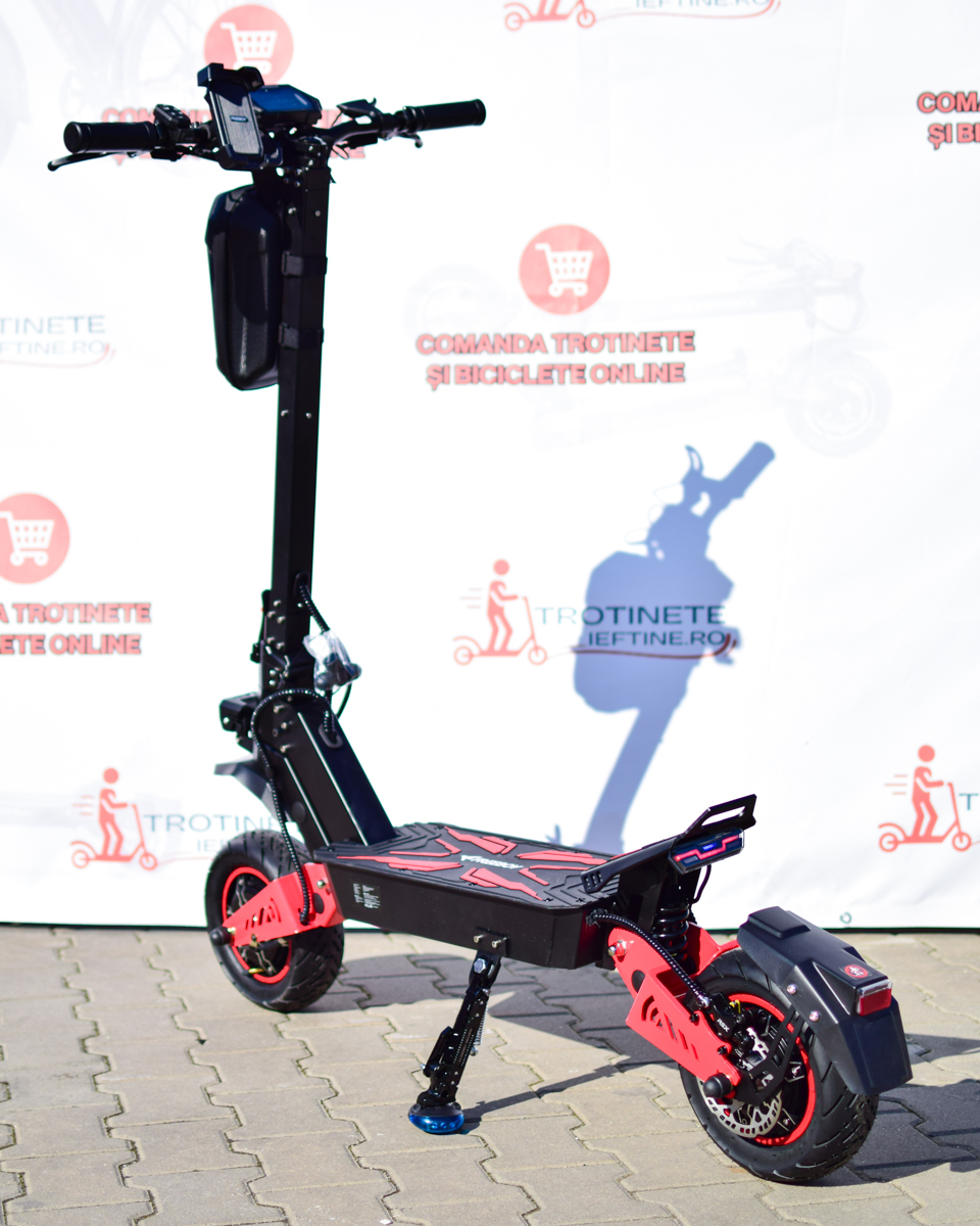 Trotineta electrică H8 redefinește performanța în clasa sa. Cu două motoare puternice de 3000W fiecare, atinge cu ușurință viteze de până la 70 km/h, oferind o accelerație puternică și stabilitate perfectă.