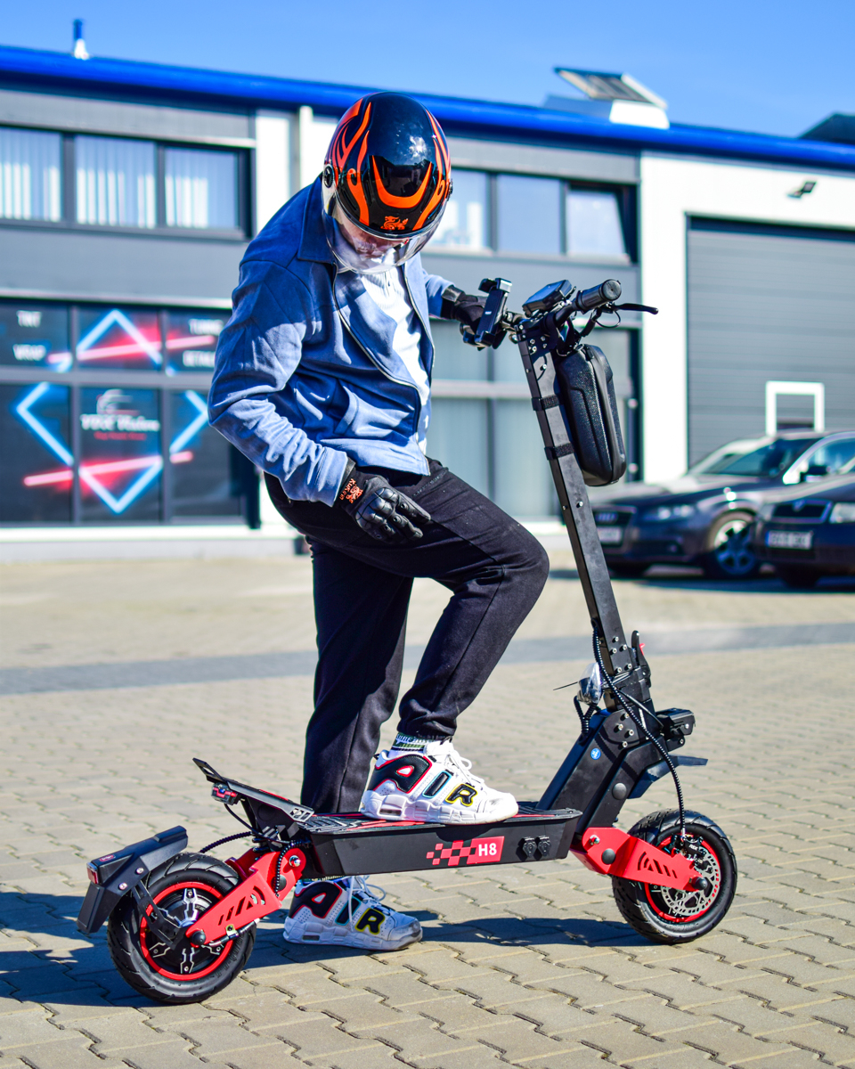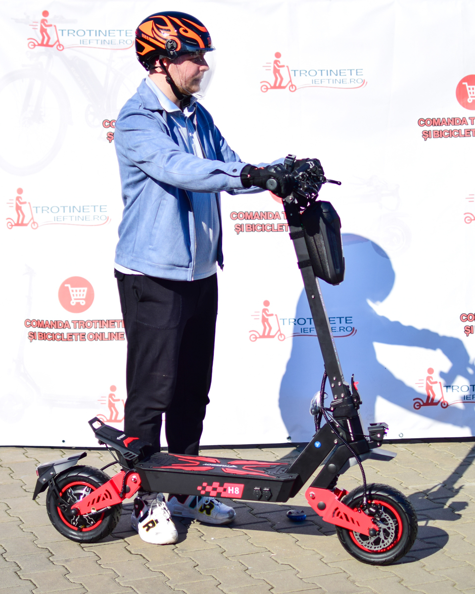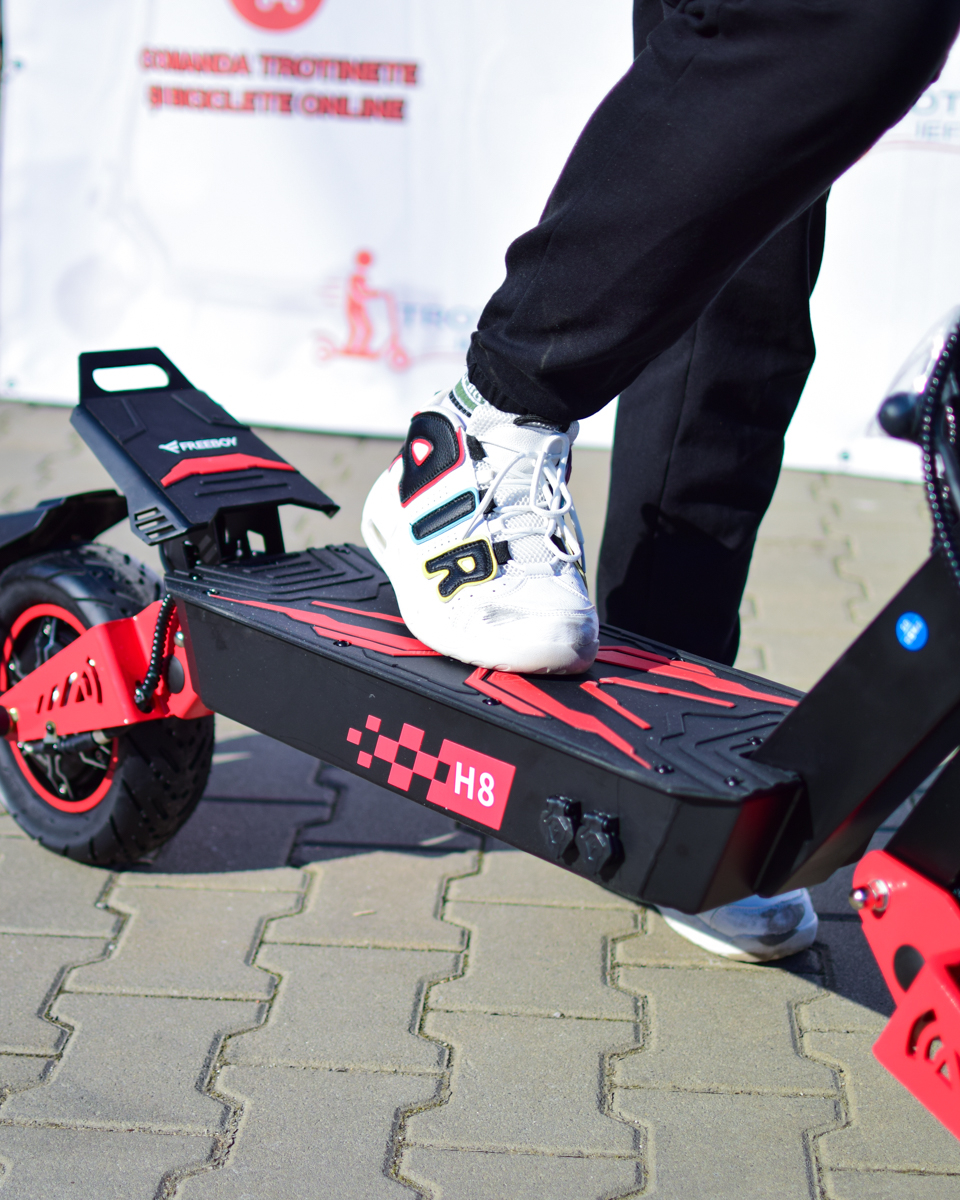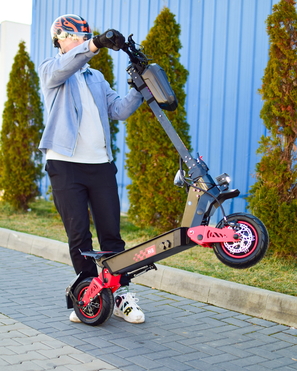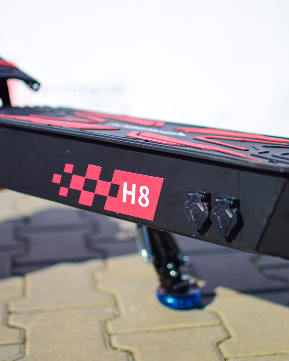 Construcția solidă și liniile agresive fac din H8 o trotinetă premium, potrivită pentru cei care doresc putere, autonomie și confort într-un singur model.