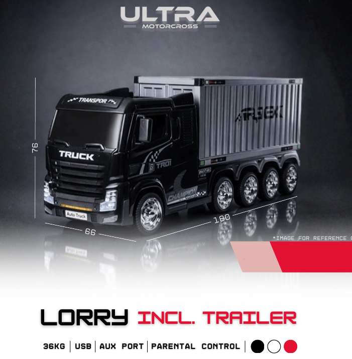 Camionul electric Lorry cu remorcă este alegerea ideală pentru copiii pasionați de vehicule de transport. Designul realist, cabina mare și containerul atașat oferă o experiență de joacă autentică.